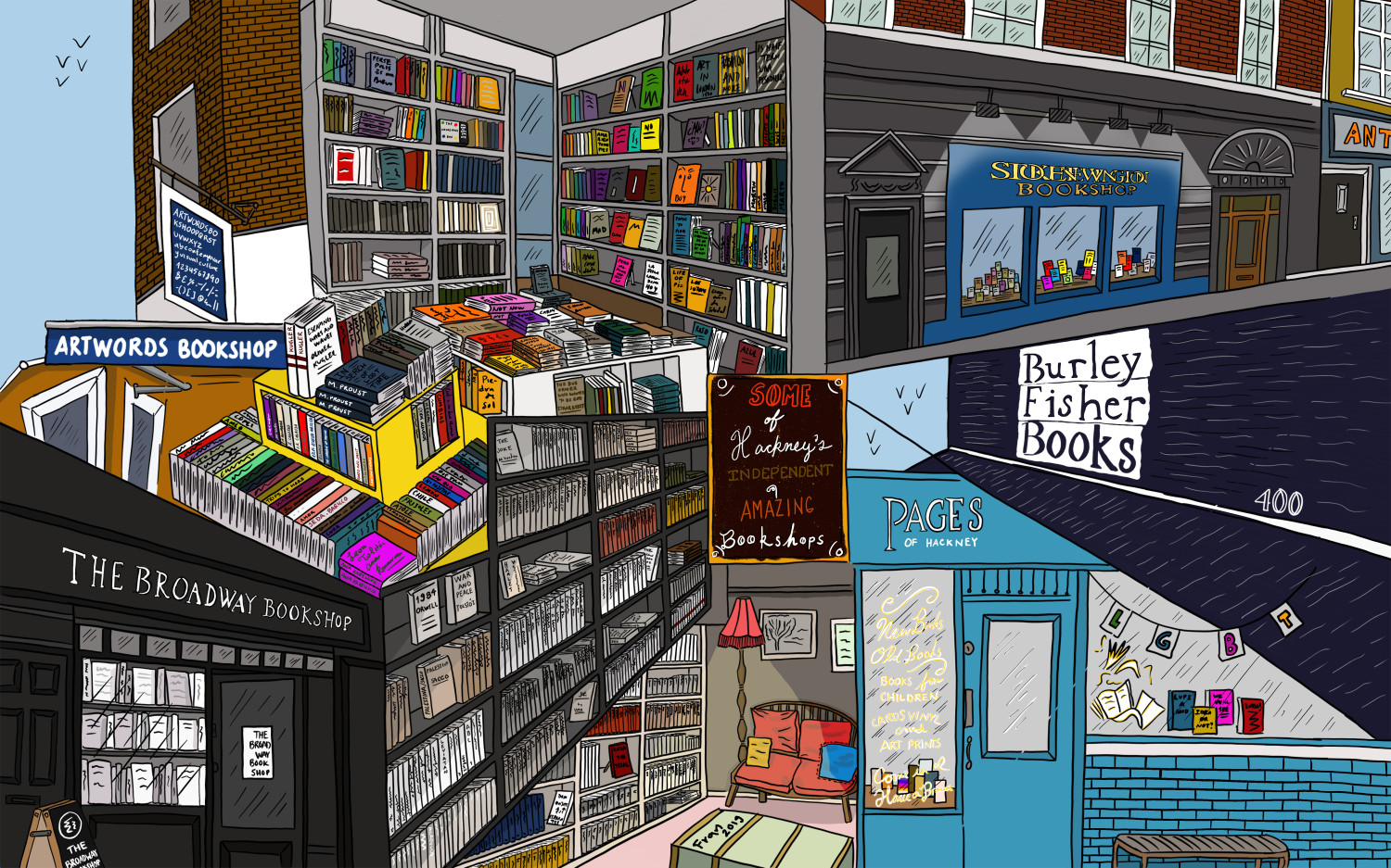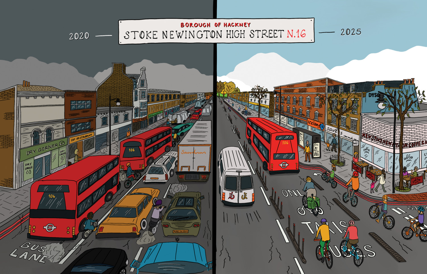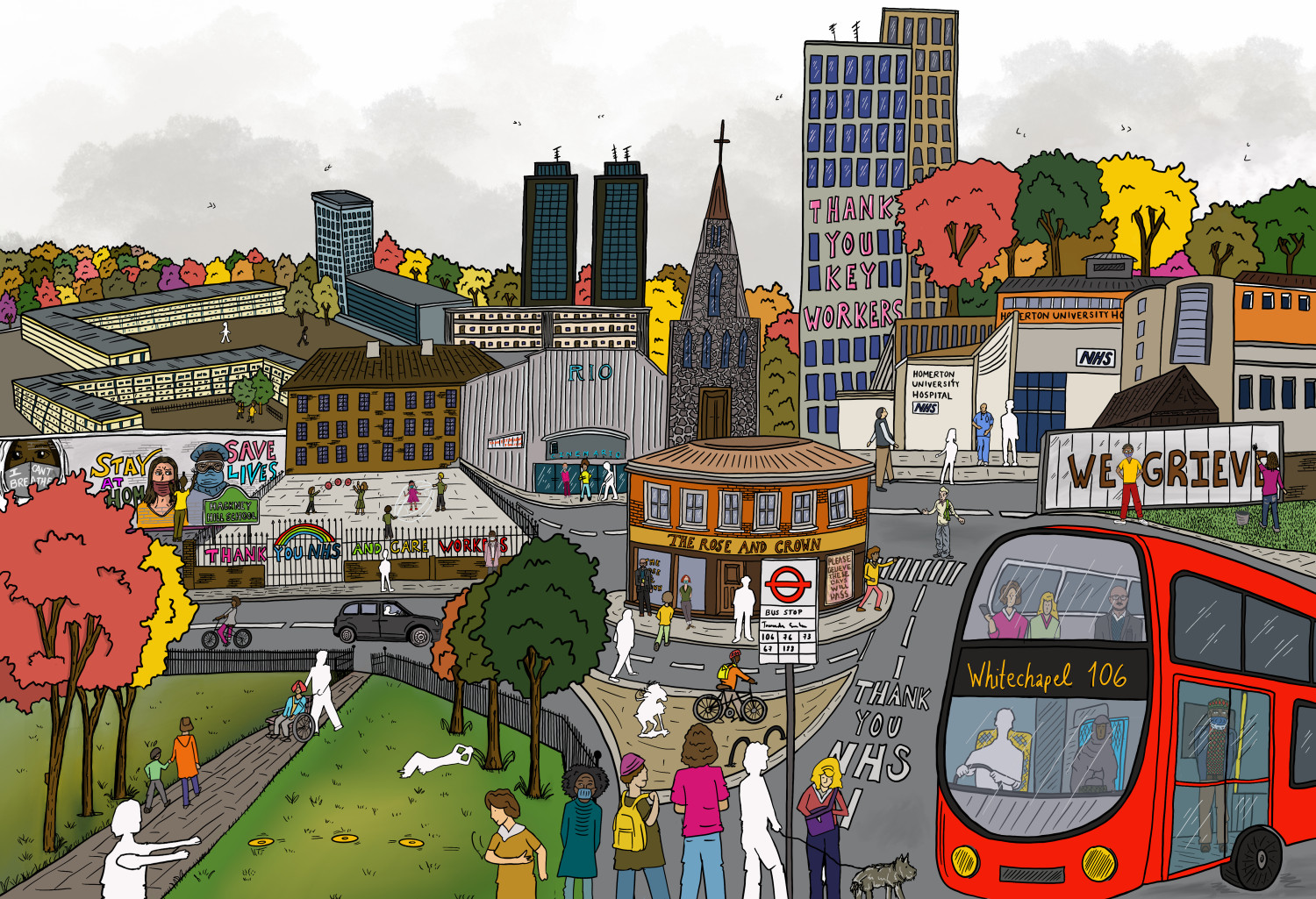 Working closely with editor Max Eckersley, we set out to portray — through images — some of the key events and stories that shaped life in the borough during this period in which we created, together, 80 illustrations, 10 x year.