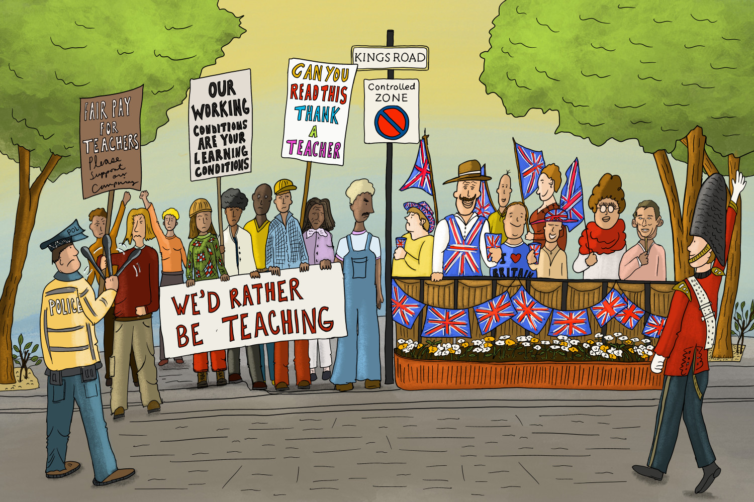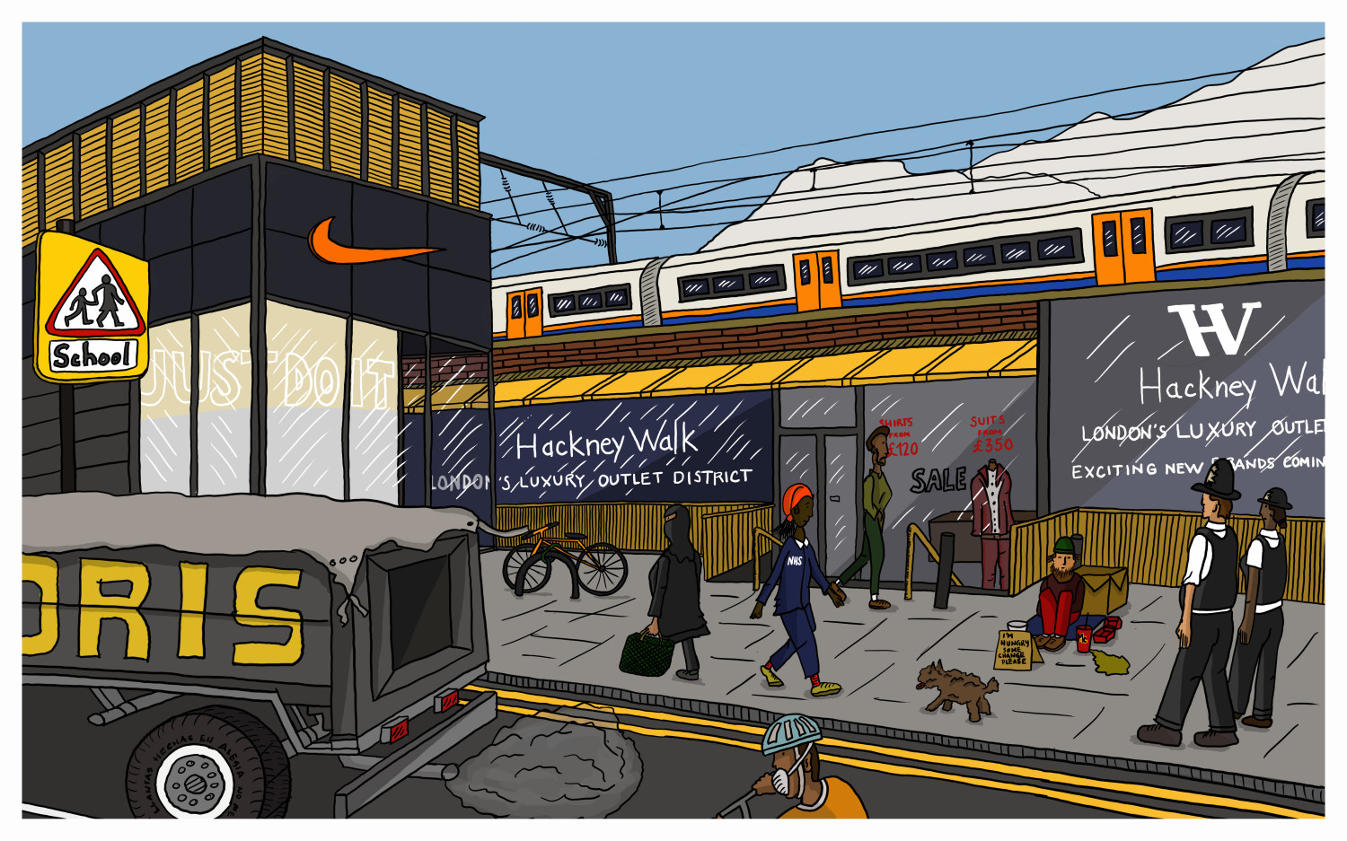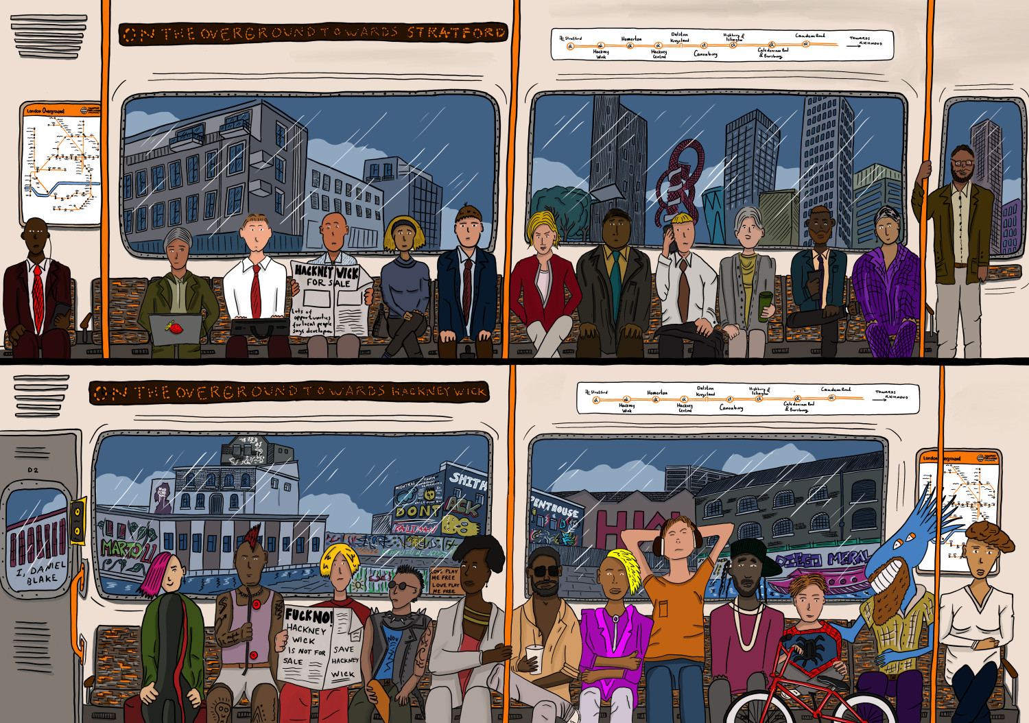Working closely with editor Max Eckersley, we set out to portray — through images — some of the key events and stories that shaped life in the borough during this period in which we created, together, 80 illustrations, 10 x year.