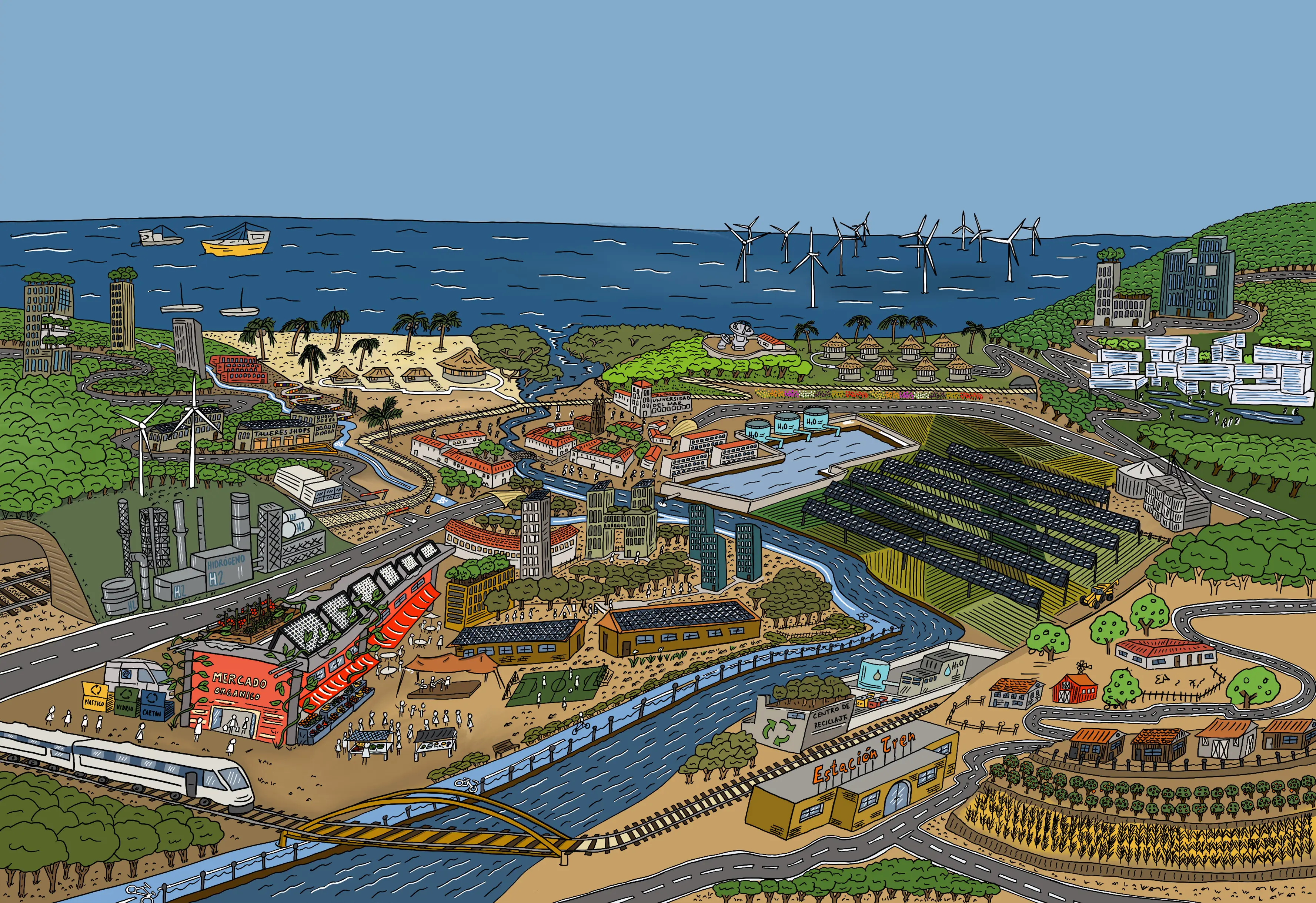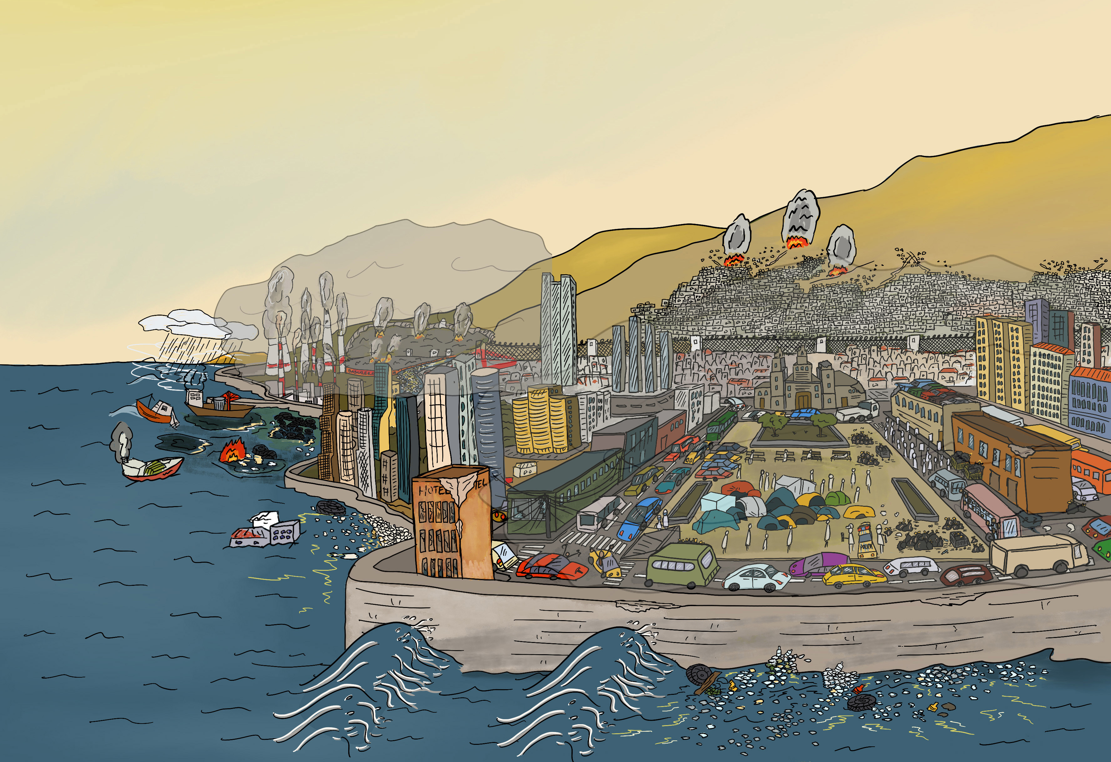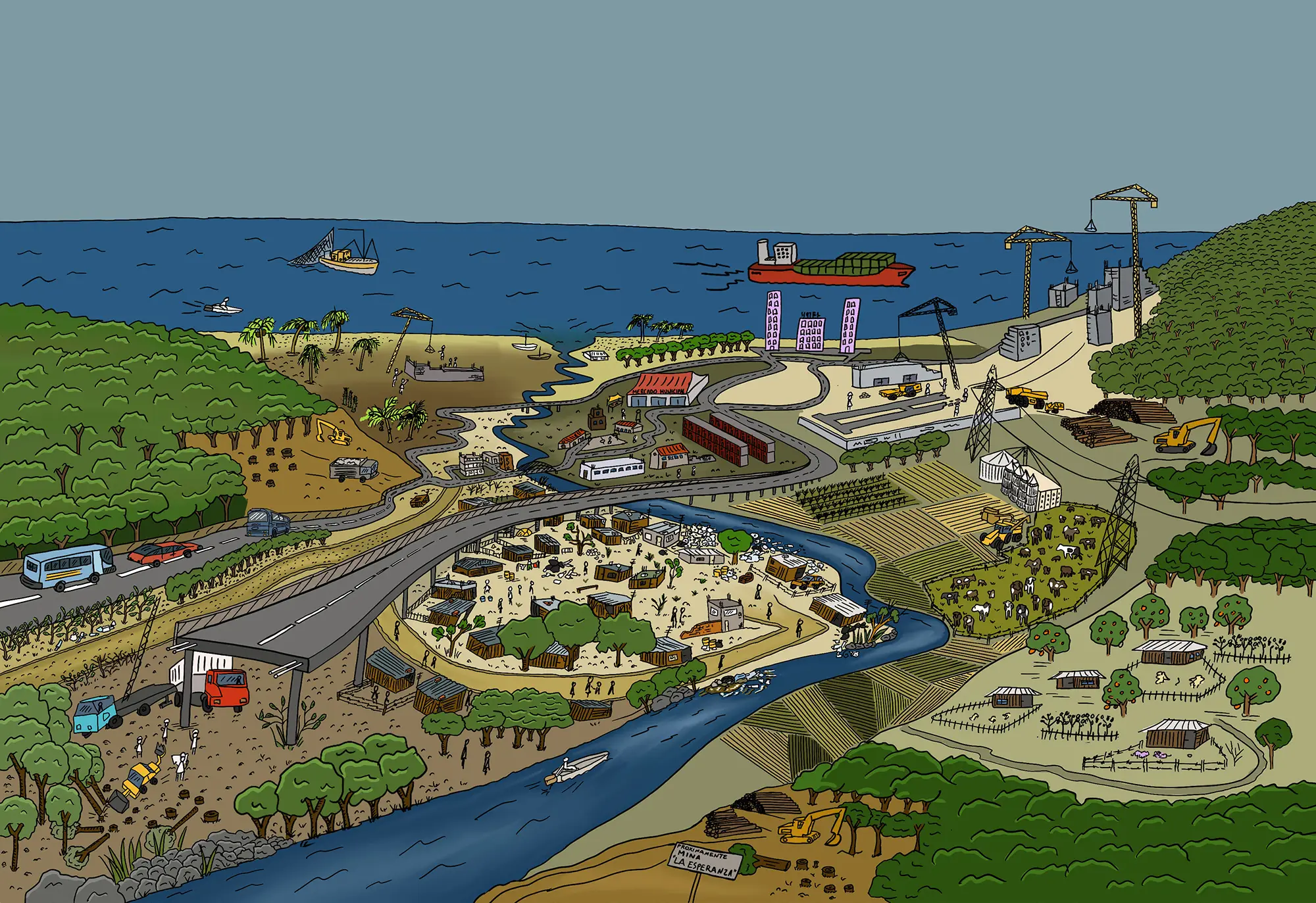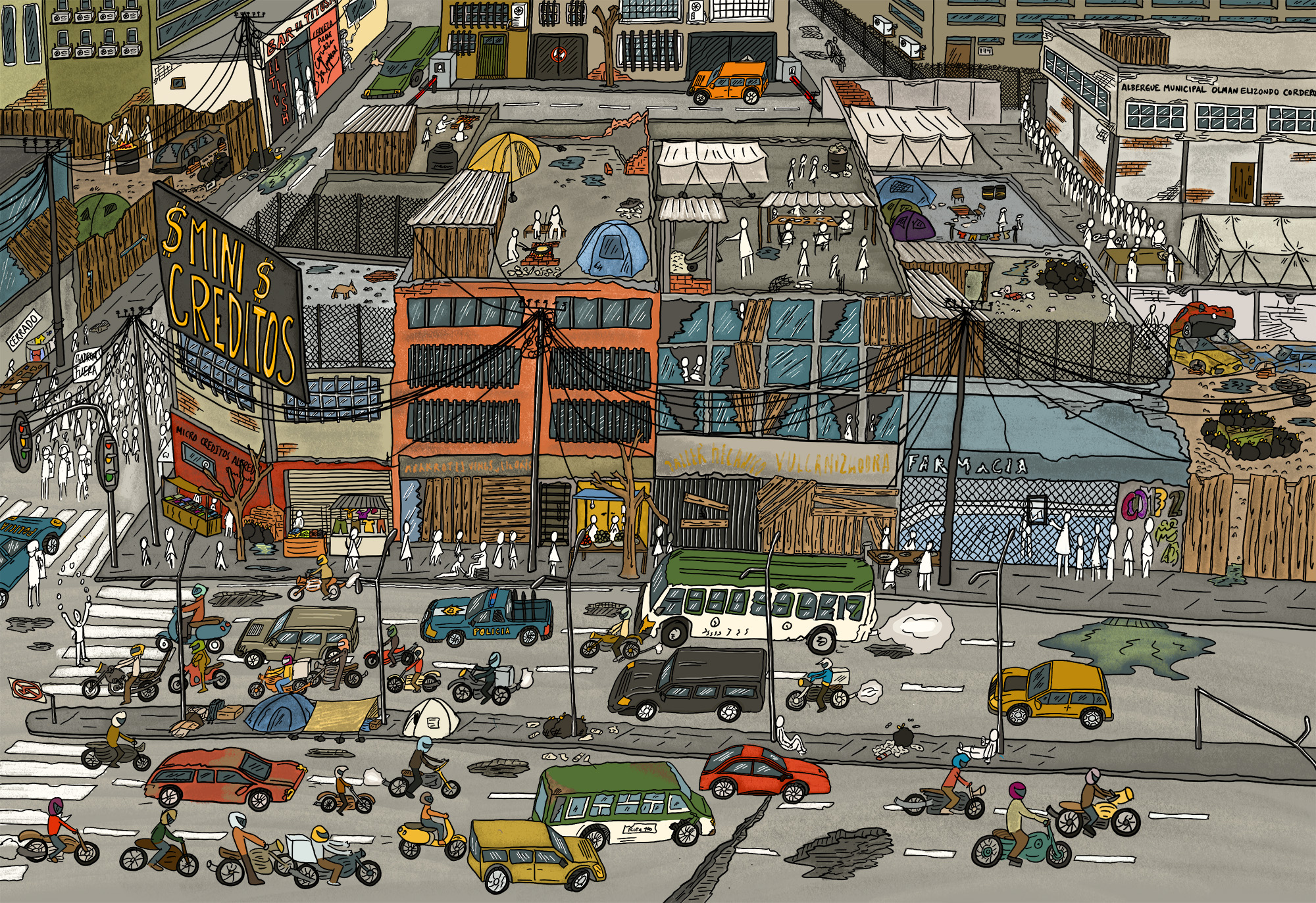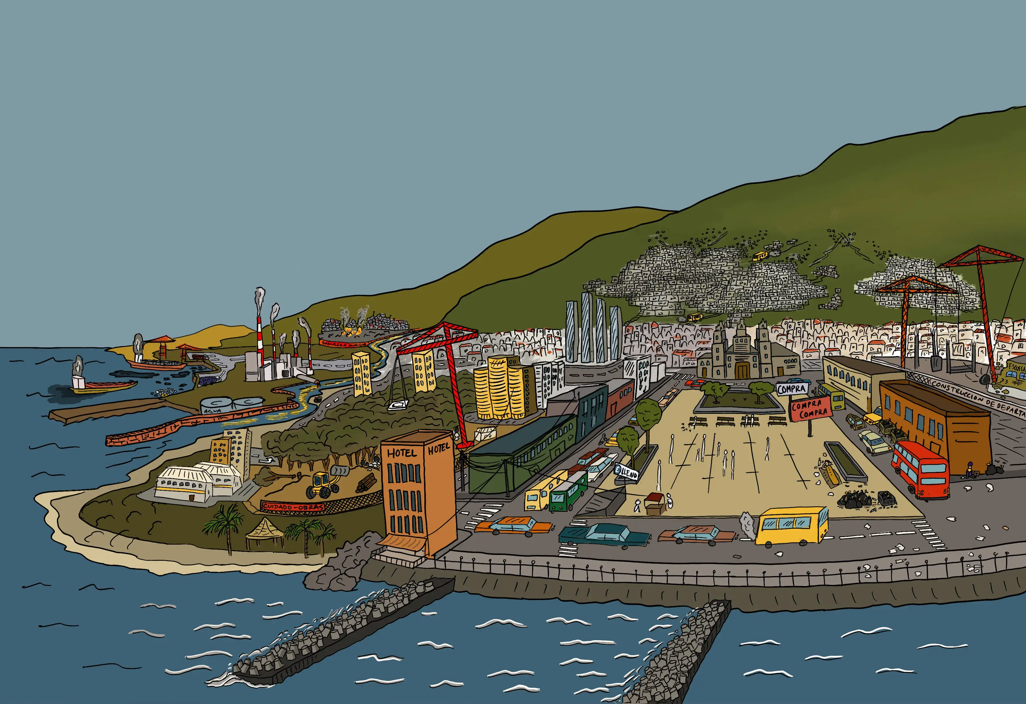 A key element of this effort has been a series of SCRUMs designed to develop visions of the future—ranging from present-day realities to dystopian and utopian scenarios. Multidisciplinary teams from Mexico, the Dominican Republic, South Africa, Lebanon, and Latin America collaborated to imagine these futures, write accompanying texts, and support the illustrator in visually representing them.
