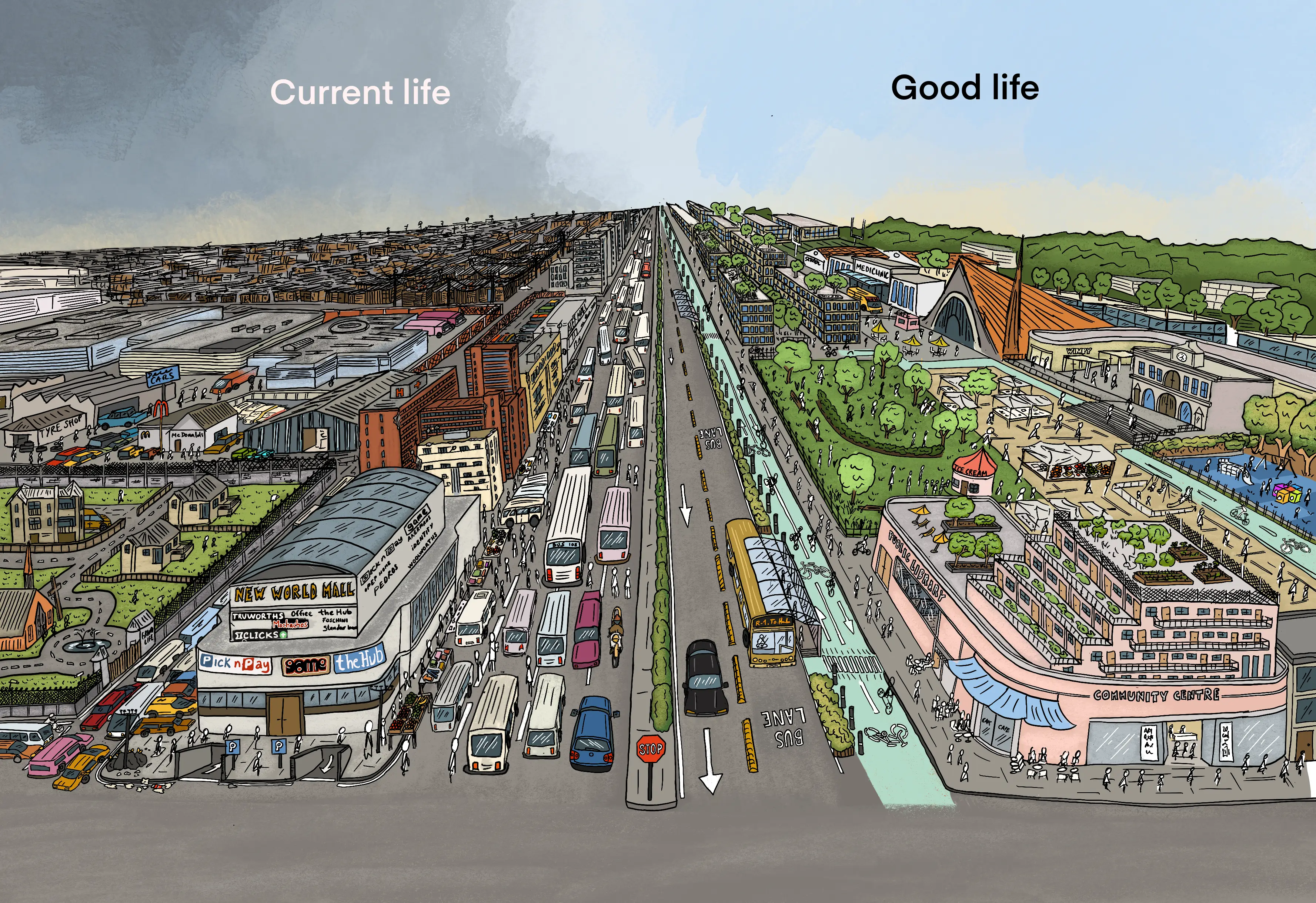 Among these, the South African transport storylines stand out for their vivid depiction of both dystopian and utopian possibilities. The resulting illustrations and narratives were integrated into an interactive app, hosted on the project’s website. This app allows users to explore the different scenarios and gain insight into the processes through which Learning by Doing developed its conclusions.